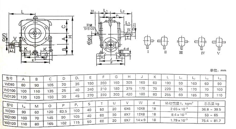WD蝸輪減速機裝配圖和參數規格: